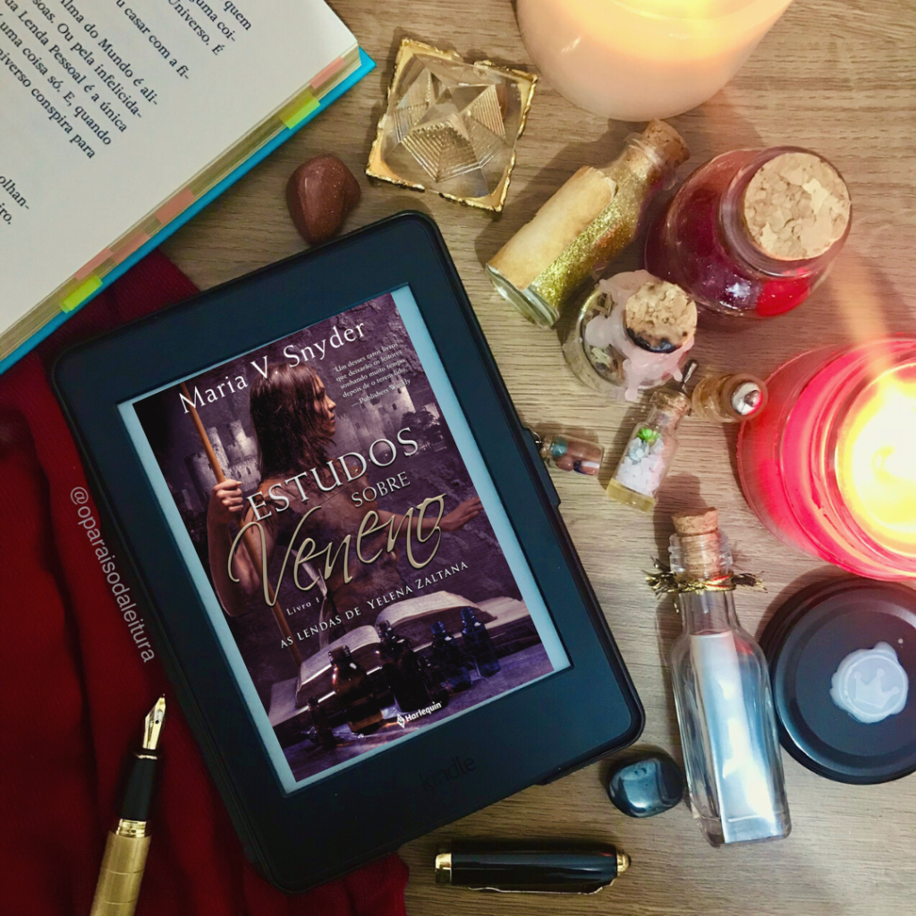 Sinopse: “Prestes a ser enforcada, Yelena é agraciada com uma prorrogação extraordinária para sua pena. Ela aceita se tornar provadora de comida e morrer no lugar do Comandante de Ixia. Mas Valek, o chefe da segurança, não deixa brecha para fuga e a envenena com Pó de Borboleta. Somente se apresentando diariamente para ele, Yelena poderá tomar o antídoto. Enquanto tenta encontrar um meio de escapar, rebeldes planejam sitiar Ixia, e Yelena desenvolve poderes mágicos. Sua vida é ameaçada e ela precisa escolher de novo… Estudos sobre veneno, primeiro livro da trilogia As Lendas de Yelena Zaltana, é uma história que encanta como uma poção mágica. O reino criado em detalhes por Maria V. Snyder deixa lugar para novas fábulas com Yelena. Um romance de estreia que impressiona ao mesclar fantasia, suspense e aventura e que foi comparado a Guerra dos Tronos, de George R. R. Martin pela Publishers Weekly.“