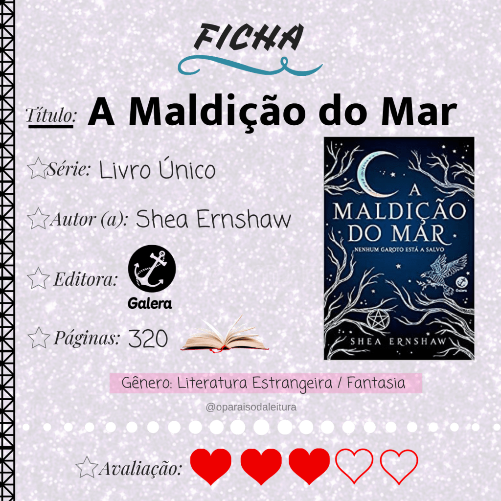 Sinopse: “Quando corpos de garotos começam a aparecer no litoral da cidade de Sparrow, alguns moradores se perguntam se a antiga lenda sobre as bruxas vingativas seria verdade. Mas até onde essa caça às bruxas pode levar? Há dois séculos, três irmãs foram condenadas à morte por, supostamente, cometerem bruxaria. Pedras foram amarradas em seus tornozelos, e elas morreram afogadas nas águas profundas que margeiam a cidade. Agora, por um breve período de tempo – a cada dia primeiro de junho até o solstício de verão –, diz a lenda que as irmãs retornam, roubando os corpos de três meninas para que, por meio deles, possam buscar sua vingança, seduzindo e afogando meninos até a morte. Como muitos habitantes locais, Penny Talbot, conhece a lenda de cor. Mas, neste ano, quando a cidade se prepara para o anual retorno das irmãs, um rapaz desconhecido, Bo Carter, chega à cidade buscando suas próprias respostas. E Penny o acolhe.Mas quando corpos de meninos locais começam a aparecer no litoral, o clima de desconfiança e medo atinge a cidade, dando início a uma verdadeira caça às bruxas. A narrativa alterna, os eletrizantes eventos do presente com relatos do diário das jovens condenadas por bruxaria, resultam no thriller sobrenatural inesquecível que é A maldição do mar.”