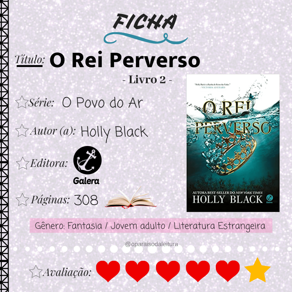 Uma leitura ainda mais regada de pessoas controladoras, joguinhos e manipulações. Li algumas resenhas afirmando que o final não é o esperado, concordo. Mas vindo de uma série repleta de todos os adjetivos citados, um final diferente talvez ficasse fora de contexto e “bonzinho” demais para Cardan. O objetivo da autora talvez tenha sido o de jogar com seu leitor até a última gota, ou até a última página.