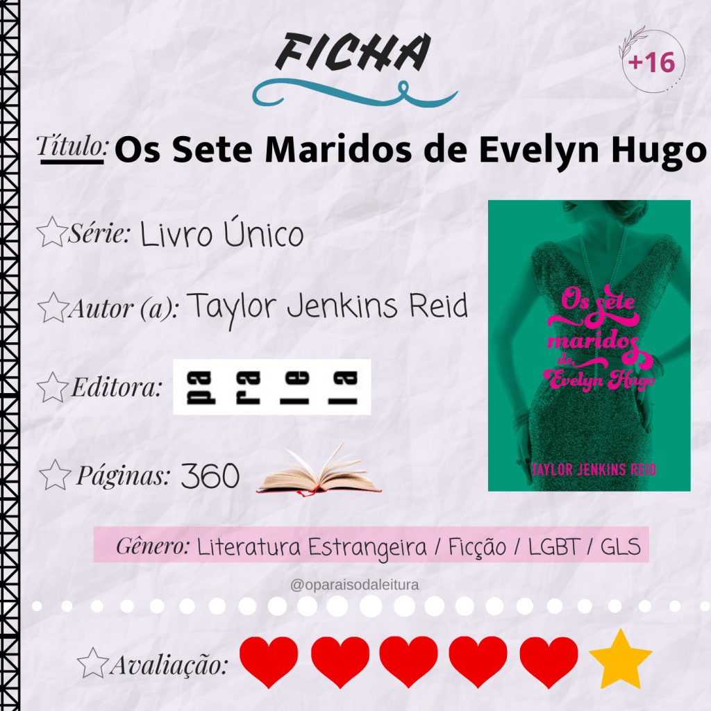 Sinopse: “Lendária estrela de Hollywood, Evelyn Hugo sempre esteve sob os holofotes ― seja estrelando uma produção vencedora do Oscar, protagonizando algum escândalo ou aparecendo com um novo marido… pela sétima vez. Agora, prestes a completar oitenta anos e reclusa em seu apartamento no Upper East Side, a famigerada atriz decide contar a própria história ― ou sua “verdadeira história” ―, mas com uma condição: que Monique Grant, jornalista iniciante e até então desconhecida, seja a entrevistadora. Ao embarcar nessa misteriosa empreitada, a jovem repórter começa a se dar conta de que nada é por acaso ― e que suas trajetórias podem estar profunda e irreversivelmente conectadas.”