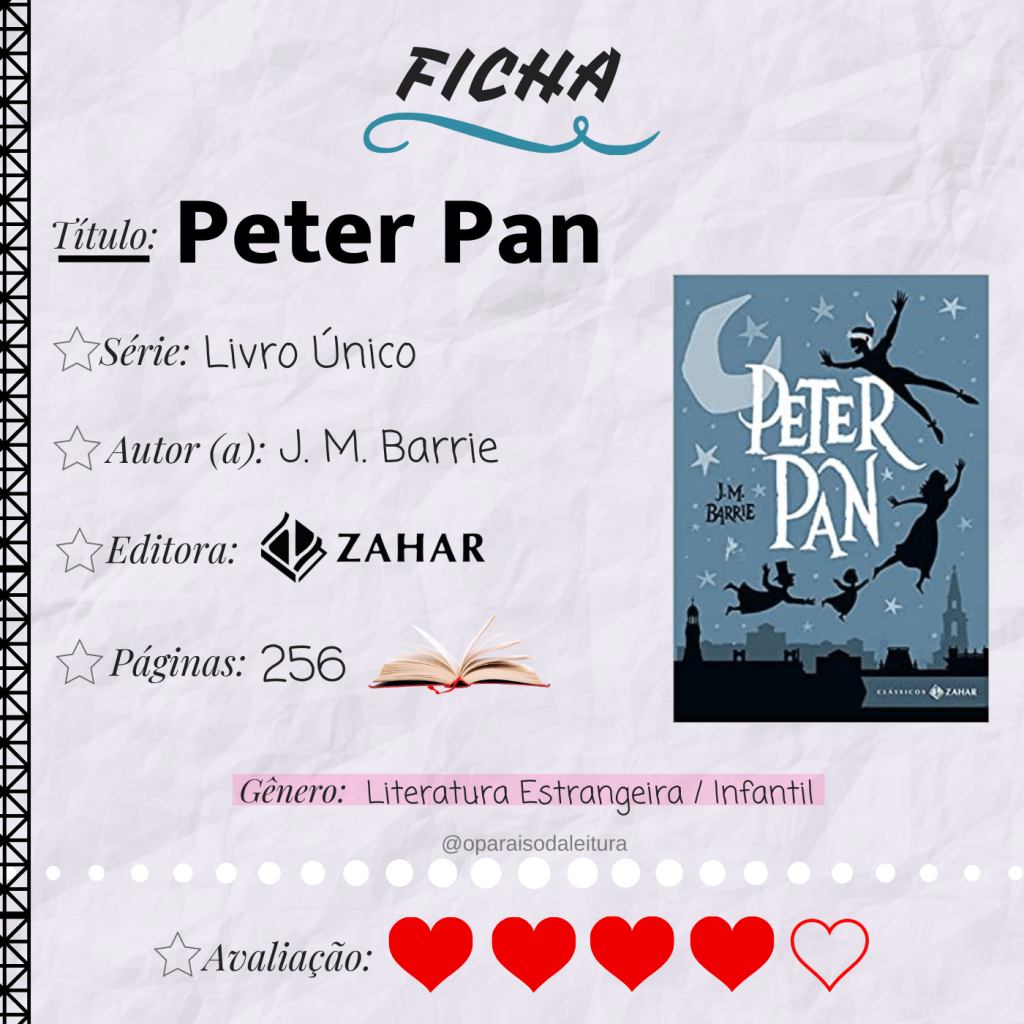 A história é muito rápida, mágica e encantadora! Gostei muito de ler um clássico que gostava muito na infância, e perceber o quanto adorava a Wendy por sempre dizer sua opinião e ter uma personalidade forte! Também tive uma outra percepção de toda a narrativa, Peter se perde em suas brincadeiras e muitas vezes acha que são reais, fiquei pensando se todas as aventuras não foram apenas imaginação das crianças desde o início. Outro ponto interessante, o menino que não quer crescer brinca imaginando uma vida de adulto.