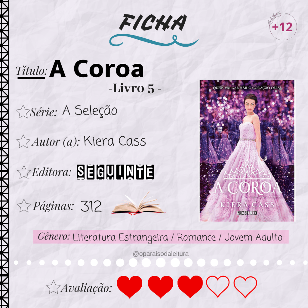 Sinopse: “Às vezes, se apaixonar é a atitude mais corajosa que alguém pode ter. Em A herdeira, o universo de A Seleção entrou numa nova era. Vinte anos se passaram desde que America Singer e o príncipe Maxon se apaixonaram, e a filha do casal é a primeira princesa a passar por sua própria Seleção. Ela não acreditava que encontraria, tal como seus pais, um amor verdadeiro durante o concurso. Mas alguns candidatos conseguem abrir rachaduras nas muralhas que Eadlyn construiu em volta de si mesma, principalmente de seu coração. Aos poucos, os Selecionados se tornam seu porto seguro, ao mesmo tempo que a fazem enxergar como é a vida fora da bolha em que vive. E ela realmente está precisando: os acontecimentos no palácio obrigam Eadlyn a assumir cada vez mais responsabilidades no governo, e a garota não tem escolha a não ser encarar a rejeição do público. Seu maior desafio é se aproximar do povo, mostrando que se importa e que tem capacidade de governar. Tudo isso enquanto a pressão para escolher um marido só aumenta ― e um garoto em particular começa a tomar conta de seu coração.”